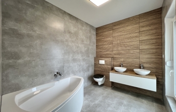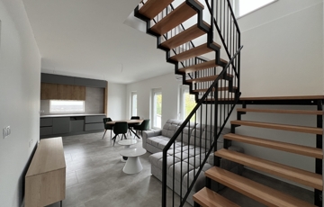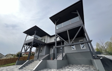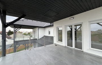 Kaposváron a Kecelhegyen, a Kőrösi Csoma Sándor utcában 2 db - egyenként nettó 116 m2-es lakórészből - osztrák technológiával épült, alacsony rezsijű könnyűszerkezetes - azonnal költözhető - új építésű ikerház eladó. A lakás a földszintjén nappali-étkező-konyha-lépcsőfeljáró, kamra, 1 szoba, fürdőszoba, külön wc, továbbá háztartási helyiség, előszoba-közlekedő kerültek kialakításra. A felső szinten közlekedő, 4 szoba, fürdőszoba-wc, továbbá egy nagy gardrób, valamint az utca felé néző szobából nyíló fedett, elegáns terasz található, amely alatt 1 db személygépkocsi tud parkolni. A lakás fenntartási költsége a felhasznált építőanyagok és műszaki megoldások miatt kedvező - a fűtés padló fűtéssel - hőszivattyúval megoldott, továbbá a nappaliban légkondicionáló is felszerelésre került. Telek: 535 m2