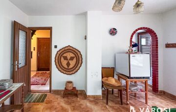 Az épület alsó szintjén található egy tágas nappali, ahol a család és barátok kényelmesen összegyűlhetnek. Ezen kívül egy hálószoba, két félszoba és egy fürdőszoba is a lakók rendelkezésére áll. A redőnyözött ablakok biztosítják a nyugodt pihenést, míg a terasz kiváló helyszín a reggeli kávézásra vagy az esti borozgatásokhoz.