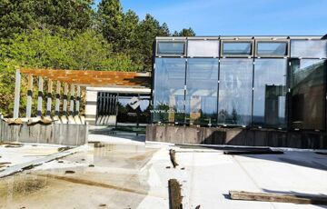 A főépület kivitelezése már 55%-os készültségi szinten áll, és a tervek szerint a wellness részleg, valamint a vendégszobák is ideálisan tájoltak lesznek a napfény és a lenyűgöző kilátás maximális kihasználására. Az építkezés során kiemelt figyelmet fordítottunk a környezetbe való tökéletes illeszkedésre: az épület tömegét alacsonyan tartottuk, a tetőteraszokat növényekkel árnyékolt pergolák díszítik, melyek között szőlőt is fogunk futtatni.