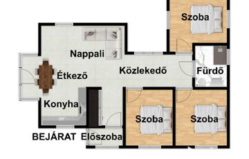 -54m2-es társasházi lakás(2 lakószoba, fürdőszoba wc-vel,konyha, közlekedő, nappali és egy gardrób)