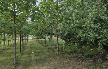 Gyümölcsfák, díszfák – és egy smaragdfa (császárfa) ültetvény.