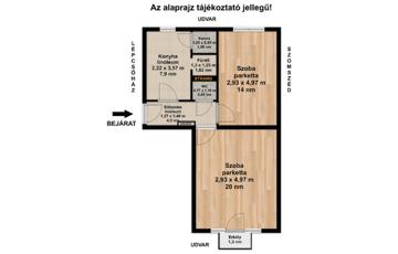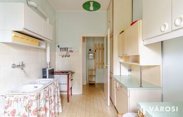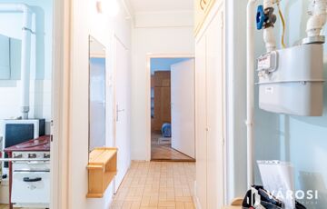 A lakás a 4. szinten helyezkedik el, zárószinti (nincs lift), így nincs felső szomszéd, a tető viszont felújított. Elosztása kedvező: két külön nyíló szoba, erkély, jól alakítható terek.