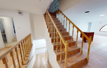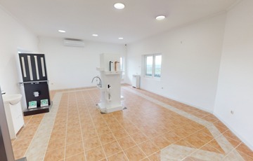 A földszinten találhatunk egy hatalmas nagy teret. Gyönyörű szép burkolattal, fallal, spotlámpákkal. Gyönyörű kilátással a környezetre. Képzeljük el, hogy akár egy étteremként, akár egy bemutató teremként – attól függően, hogy mire kívánjuk használni az ingatlant – kiválóan funkcionálhat a mellette levő külön teremmel, recepcióval, és a hozzá tartozó tárolókkal együtt.