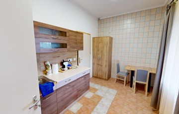 A földszinti három apartman mozgáskorlátozott vendégek számára kialakított lakótér lesz. Ennek a befejezése még várat magára. Természetesen külön bejárattal, autóval a főbejárattól egészen az ajtóig lehet majd gurulni.