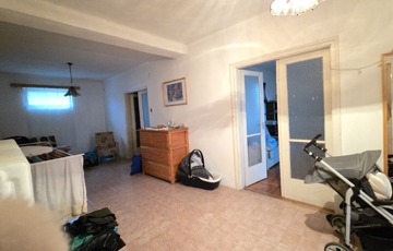 A ház eredetileg úgy épült, hogy a felső szintre külső lépcső vezet, ami akkoriban modern és praktikus megoldásnak számított. Ma már kevésbé ideális, viszont nagyon könnyen összenyitható a két szint, így akár egy gyönyörű, egybenyíló, nagyvonalú lakótér is kialakítható.