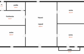 Lakótér: 88 m² + felső szint