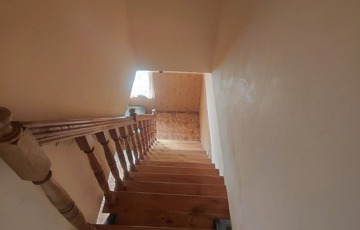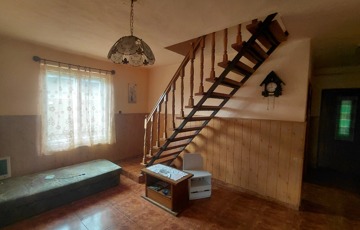 A nappaliból induló lépcső az emeletre vezet, ahol három további szoba, egy tágas folyosó és egy fürdőszobának kialakítható helyiség várja új gazdáját.