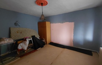 A fa nyílászárók és a betonozott aljzatok stabil alapot adnak a felújításhoz, amely során a ház újra régi fényében ragyoghat.