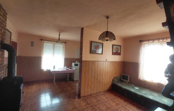 A ház már messziről is azt a nyugodt, vidéki hangulatot árasztja, amelyet egyre kevesebb helyen lehet megtalálni. A tetőt pala fedi, a meleget pedig a központi fatüzelésű kazán adja — igazi, otthonos, kandallóhangulatú melegség.