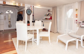 Ott egy jó hangulatú szobába érkezünk, mely egy üveges előtérhez/télikerthez csatlakozik, egy háló, kis konyha, fürdőszoba, valamint egy finn szauna fogad minket!