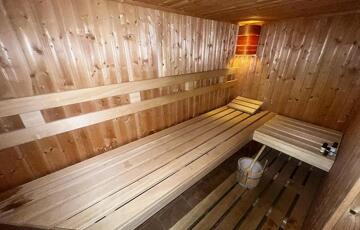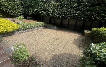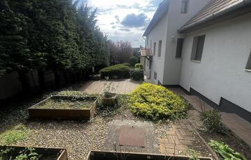 A hátsó udvaron medence, félszuterén szinten szauna található.