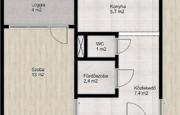 Eladó Óbudán egy 48 nm-es, 2 szobás panellakás beépített loggiával.