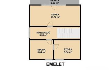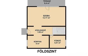 Földszint: nappali, konyha + étkező, zuhanyzós fürdőszoba + wc, terasz, szélfogó.