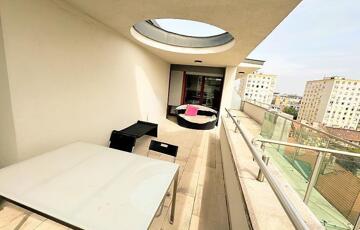 Eladó a Római Kertben (Visegrádi utcában, ) egy különleges Penthouse lakás, amelyet az örök panoráma és a kivételes adottságok tesznek igazán egyedivé. A lakás legnagyobb értéke a 47 nm-es tágas, részben fedett terasz, amely tökéletes helyszíne lehet pihenésnek, kikapcsolódásnak vagy akár baráti összejöveteleknek, miközben a város látványát csodálhatjuk. A felső szinten elhelyezkedő ingatlan 53 nm-es, kétszobás, amerikai konyhás világos, kettős tájolásának köszönhetően minden helyisége természetes fényt kap., A liftes, újépítésű társasházban található ingatlan így nemcsak kényelmes, hanem hosszú távon is értékálló választás. A lakók számára pihenőkert és játszótér is rendelkezésre áll a belső udvarban. Az ingatlanhoz egy alagsori parkolóhely is tartozik, ami 15 Millió Forintért megvásárolható. Elhelyezkedés szempontjából: néhány perc sétára található a Duna-part, Margit-sziget, M3-as metró és a Westend Bevásárlóközpont.