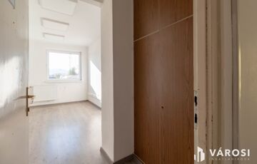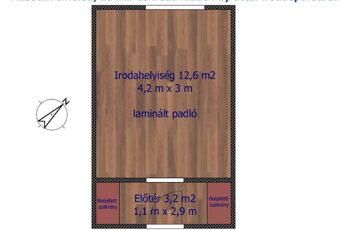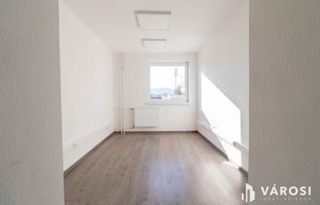 A 16 m2-es iroda az irodaház 2. emeletén helyezkedik el. A helyiség laminált padlóval burkolt.