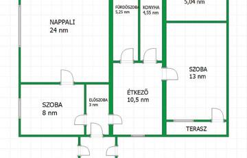 Elosztása: 3 db hálószoba, konyha, étkező, fürdőszoba