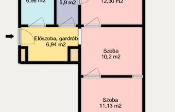 Az ingatlan a tulajdoni lap szerint kétszobás, de három szobássá lett alakítva, amely elrendezést a csatolt alaprajzon megtekinthet.