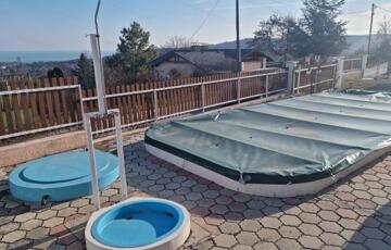 <p>A CasaNetWork Veszprém Ingatlaniroda ELADÁSRA kínálja a 2475-ös számú, egyedülálló tulajdonságokkal bíró családi házát Balatonalmádiban!</p><p>A családi ház 1455 nm telken helyezkedik el; a 340 nm lakótérhez még egy hangulatos nyitott és egy fedett terasz, medence, kültéri zuhanyzó tartozik.</p><p>A ház második szintjéről csodás 180 fokos balatoni panoráma tárul elénk. A K-D-NY-i tájolás miatt az ingatlan és terei világosak.</p><p>Az ingatlan zsákutcában található; csendes, biztonságos, nyugodt, kellemes zöldövezet, minimális átmenő forgalommal.</p><p>A ház az utca felől kényelmesen megközelíthető.</p><p>A fedett gépkocsi beállók alatt 4 db személyautóval lehet parkolni, illetve további autók elhelyezése is lehetséges az udvaron.</p><p>Az 1980-as években épült, 2022-ben kisebb-nagyobb szépészeti felújításon átesett apartmanház praktikus elrendezésű. Mindkét épületrészben 1 db kétszobás és 1 db egyszobás, kis konyharésszel ellátott, gépesített, hűtő-fűtő klímás apartman található. Minden szobához tartozik egy fürdőszoba WC-vel és zuhanyzóval.<br />A helyiségek elrendezések lehető teszi, hogy a család/társaság együtt is le tudjon ülni alkalmanként, de az elvonulás, a privát szféra megteremtésére is több lehetőség adódik.</p><p>A közösségi térből nyílik az egyedi adottsággal bíró, régi boltíves pince és ahhoz tartozó különleges hangulatú helyiség, amely remek lehetőséget nyújt családi, társasági események megrendezésére.</p><p>A ház melletti kisház funkciója jelenleg különleges kemence; a kerti zuhanyzó és a medence melletti szabadtéri rész pedig alkalmas pihenésre, feltöltődésre.</p><p>A házban bekötött kábel tv és internet is elérhető.<br />A hűtés és a fűtés jelenleg klímával megoldott, de a gáz bevezetése is megoldható igény szerint.</p><p>Az ingatlan elhelyezkedése: a Kisberényi úttól északra kb. 500 m, minden évszakban jól járható úton megközelíthető. A buszmegálló 1 km, a balatonalmádi vasútállomás és a vízpart 2 km, élelmiszerbolt 1 km távolságra érhető el.</p><p>A házat jelenleg bérlők lakják, az adásvétel igény szerint a fennálló bérleti jogviszonnyal együtt történik.</p><p>Amennyiben a CasaNetWork Veszprém Ingatlaniroda által hirdetett 2475-ös számú balatonalmádi apartmanház, vagy bármely a kínálatunkban található ingatlan felkeltette érdeklődését, kérem, hívjon a megadott telefonszámon!</p><p>Dallos Krisztina<br />ingatlanképviselő</p><br />