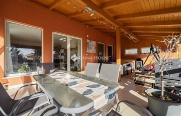 Diósd kedvelt, nyugodt részén eladó egy önálló családi ház, amely nyeles telken helyezkedik el, így lakói számára valódi privát szférát és csendes környezetet biztosít. Az ingatlan az utcáról közvetlenül nem látható, átmenő forgalom nincs, ezért különösen ideális családoknak vagy azoknak, akik nyugodt, zavartalan otthont keresnek.A ház nettó 115 m² lakótérrel rendelkezik, amely praktikus és jól élhető elrendezésű.Főbb területek:Lakótér: 115 m²Garázs: 40 m² (két autó számára is alkalmas)Szaunarész: 10 m²Közlekedő: 10 m²Nappaliból nyíló terasz: 40 m²A lakótér kényelmes kialakítású: 3 különnyíló hálószoba, 2 fürdőszoba, 2 WC és egy dolgozószoba került kialakításra. A világos nappali közvetlen kapcsolatban áll a tágas, 40 m²-es terasszal, amely ideális helyszín lehet pihenésre, családi étkezésekre vagy baráti összejövetelekre.Az ingatlan egyik különlegessége a saját szaunarész, amely ritkán található meg ebben a kategóriában, és kellemes kikapcsolódást nyújt a mindennapokban. A 40 m²-es garázs két autó számára is kényelmes parkolást biztosít, emellett bőséges helyet ad tárolásra vagy akár hobbitér kialakítására is.A nyeles teleknek köszönhetően a ház csendes, belátásmentes környezetben található, így ideális választás lehet mindazok számára, akik hosszú távra keresnek nyugodt, élhető otthont.