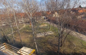 A panorámás, parkra néző lakás ablakai redőnnyel, vagy fényvédő rolóval szereltek.
