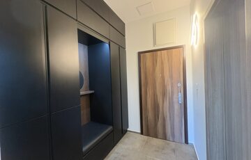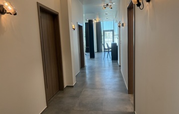 A lakáshoz tartozik egy 35,85 m²-es, zárt, kizárólagos használatú közlekedő és előtér-rész, amely elegáns érkezést biztosít, és igény esetén lehetőséget ad arra is, hogy a szomszédos lakással könnyedén összekapcsolható legyen.