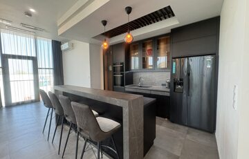 • 57,97 m²-es amerikai konyhás nappali – modern gépesített konyhabútorral