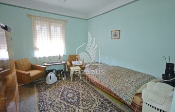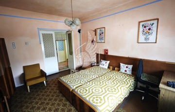 A felső lakószinten négy tágas szoba, valamint egy különálló fürdőszoba és WC kapott helyet. A helyiségek burkolatait hagyományos PVC, mozaik és festett beton jellemzi, amelyek a modernizálás során könnyen alakíthatóak.