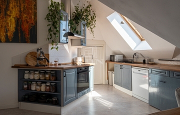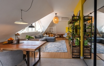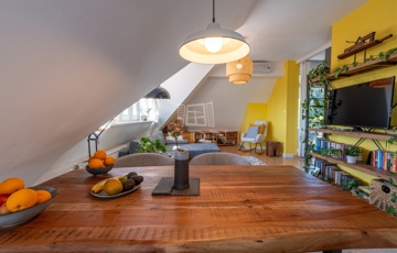 PANORÁMÁS tetőtéri, 74 nm-es lakás amerikai konyhás nappalival és 2 hálószobával (egyik szoba jelenleg 2 kisebbé alakítva).