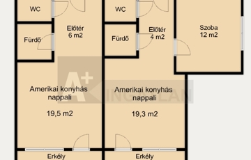 - 42 m²-es apartman: amerikai konyhás nappali + hálószoba, külön fürdő és WC+ erkély