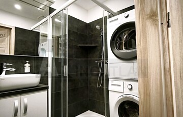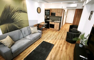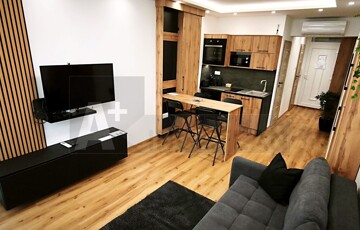 - 33 m²-es apartman: amerikai konyhás nappali + külön fürdő és WC + erkély