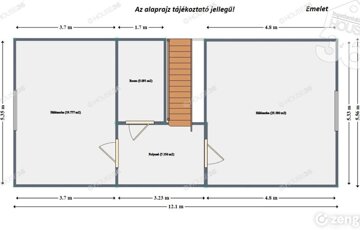 Emelet: 2 külön nyíló szoba, igény szerint külön fürdőszoba is kialakítható, ami tovább növeli a komfortot