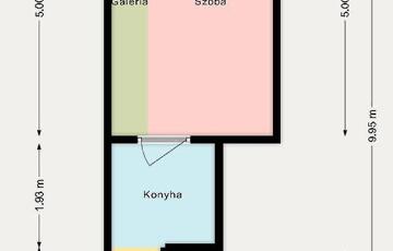 A praktikus galériának köszönhetően a tér jól kihasználható, ideális első lakásnak vagy befektetésnek is.