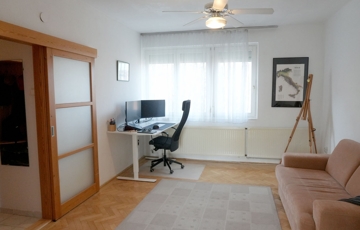 A lakásba érkezve egy jól használható előtér fogad, praktikus tárolási lehetőségekkel, ahonnan minden helyiség külön megközelíthető. A világos konyha, a kisebb háló, valamint a nagyobb tér a belső, zöld kert irányába néznek, így csendes és nyugodt életteret biztosítanak. Az ablakos fürdőszoba – amely ma már ritkább adottság – a ház másik oldalán kapott helyet.